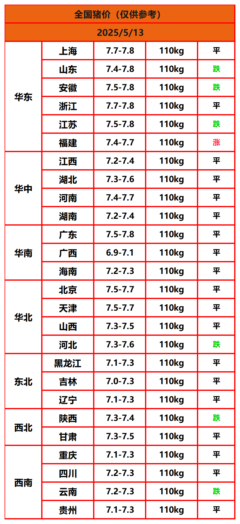 今日猪价 | 2025年5月13日全国猪价行情一览表!