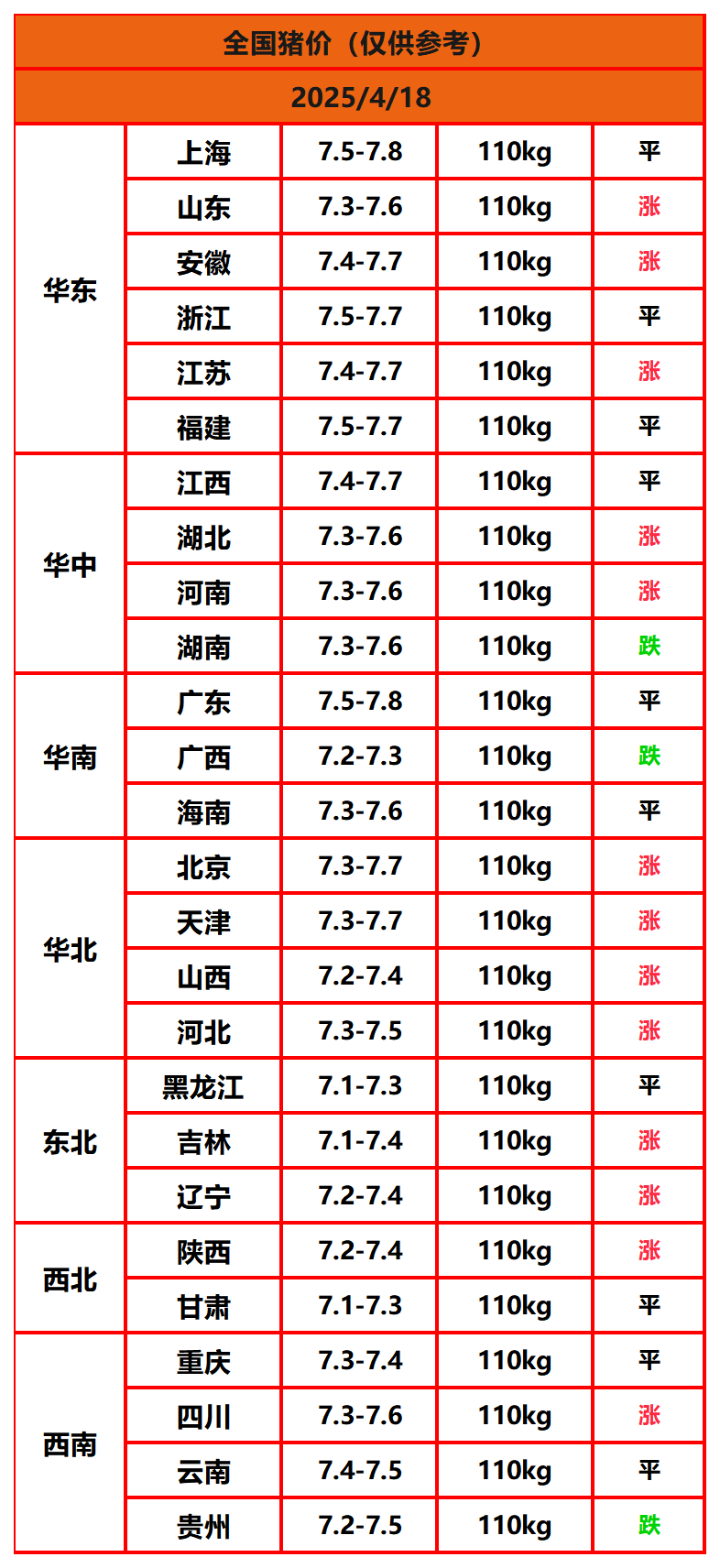 2025年4月18日猪价,今日全国猪价行情走势:13涨10平3跌。