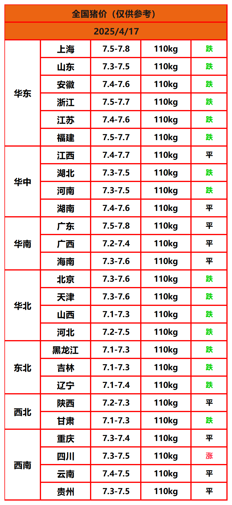 今日猪价 | 2025年4月17日全国猪价行情一览表!
