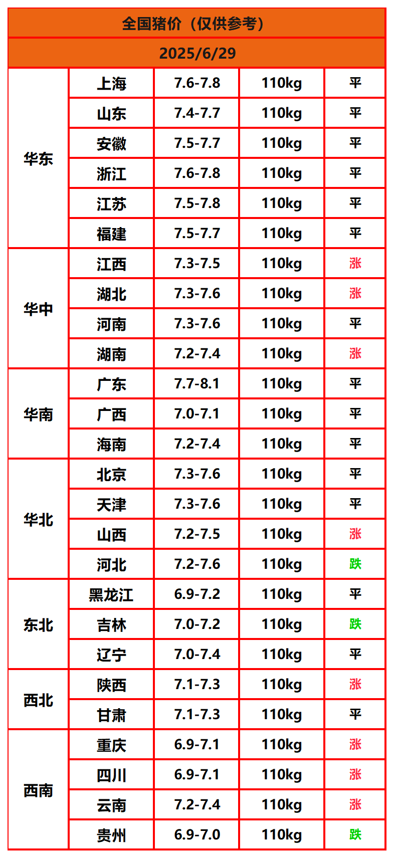今日猪价 | 2025年6月29日全国猪价行情一览表!