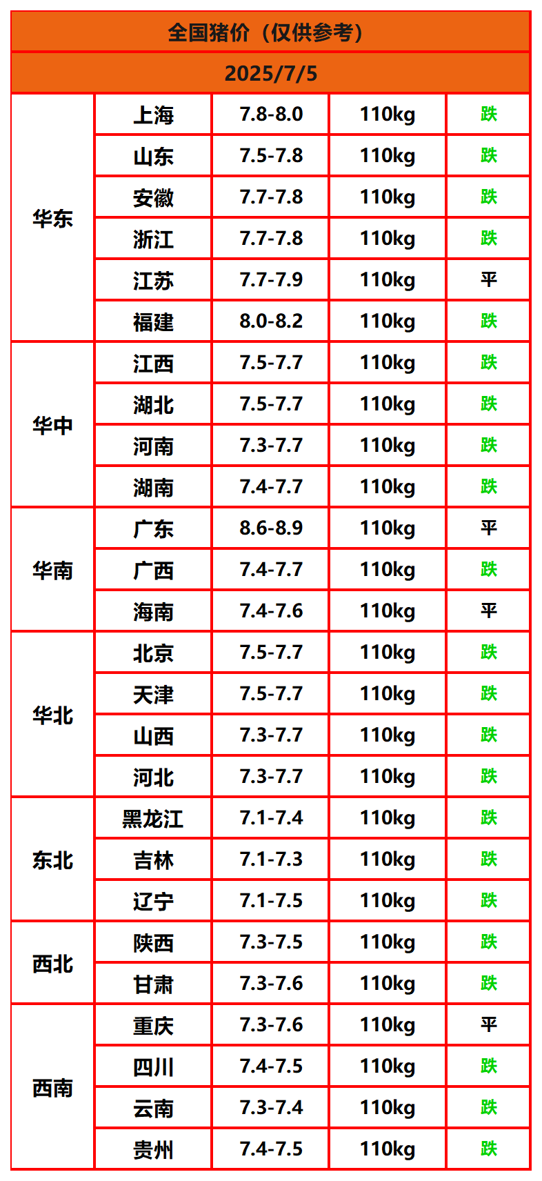 今日猪价 | 2025年7月5日全国猪价行情一览表!