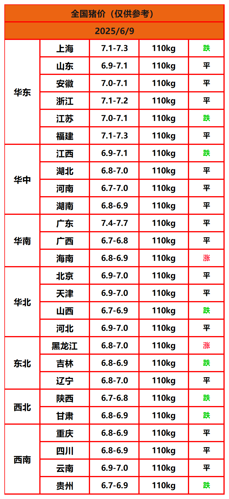 今日猪价 | 2025年6月9日全国猪价行情一览表!