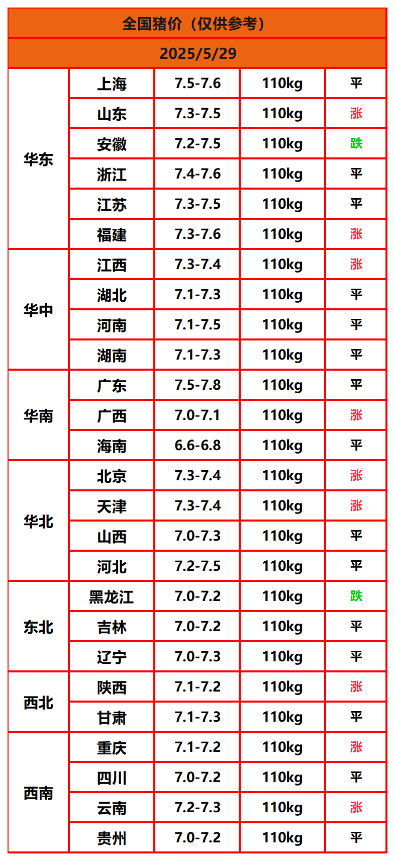 今日猪价 | 2025年5月29日全国猪价行情一览表!
