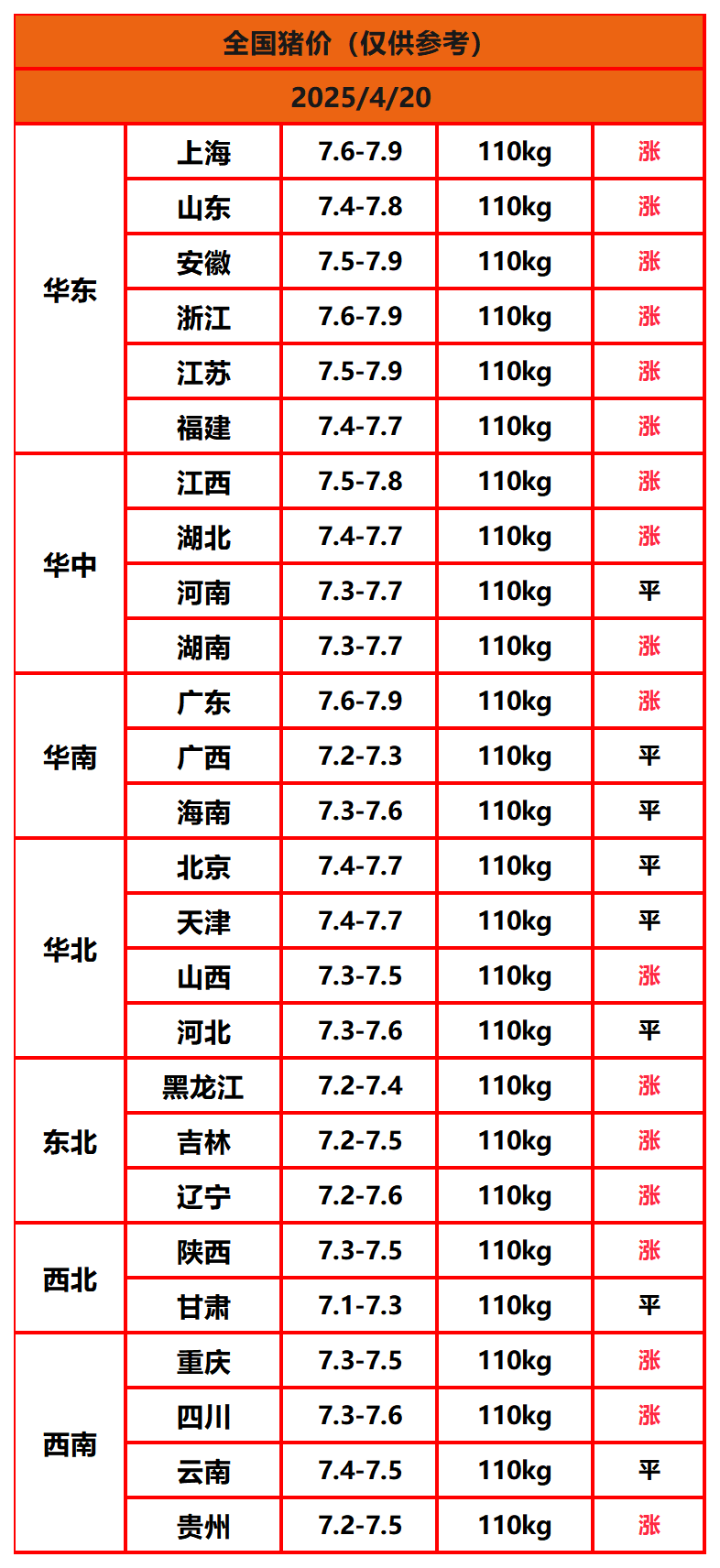 今日猪价 | 2025年4月20日全国猪价行情一览表!
